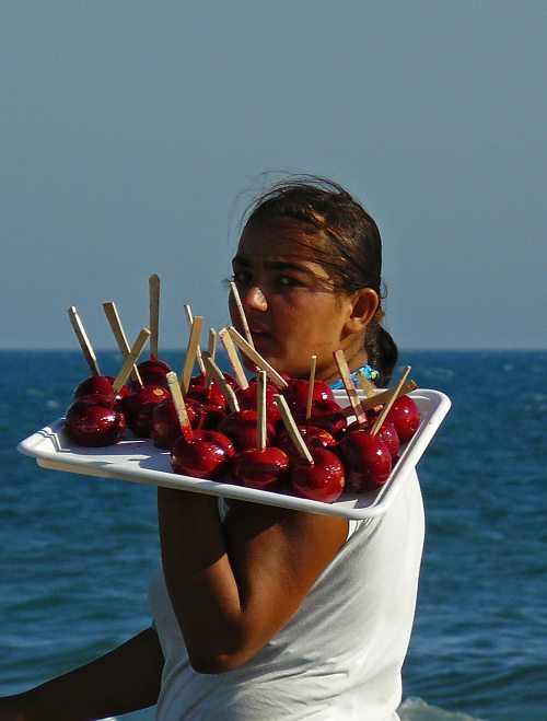 na tacy są jakieś jabłka w polewie. nie odważyłem się kupić :) za to kukurydza z grilla była prima sort …