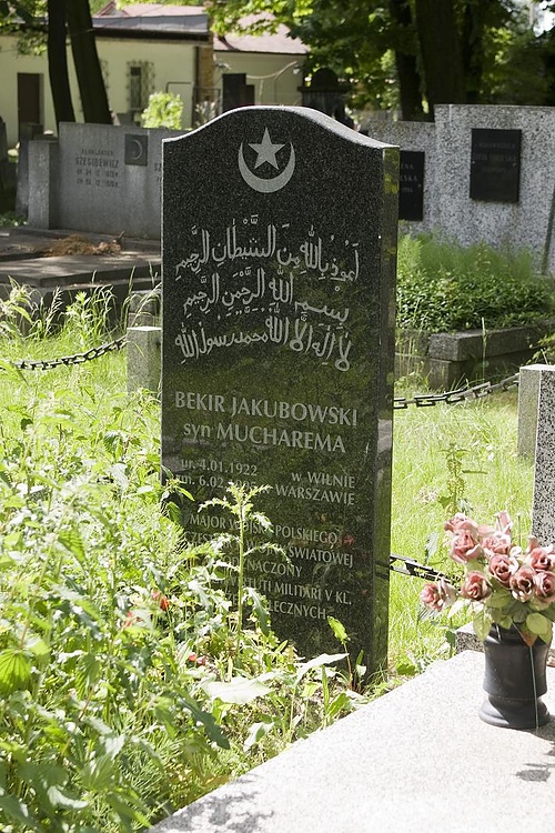Cmentarz muzułmański tatarski Leży na północny zachód, od cmentarza Powązkowskiego, u zbiegu ulic Kozielskiej i Ostroroga.